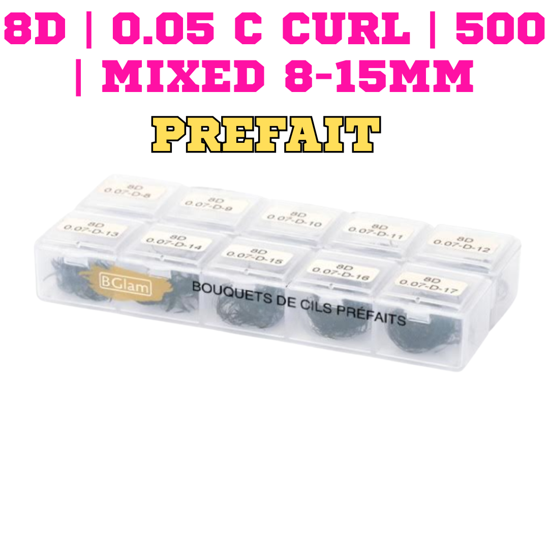 BGLAM Premade Fans 8D | 0.05 C Curl | 1000 | Mixed 8-15mm