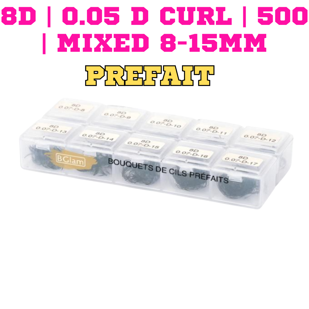 BGLAM Premade Fans 8D | 0.05 D Curl | 500 | Mixed 8-15mm