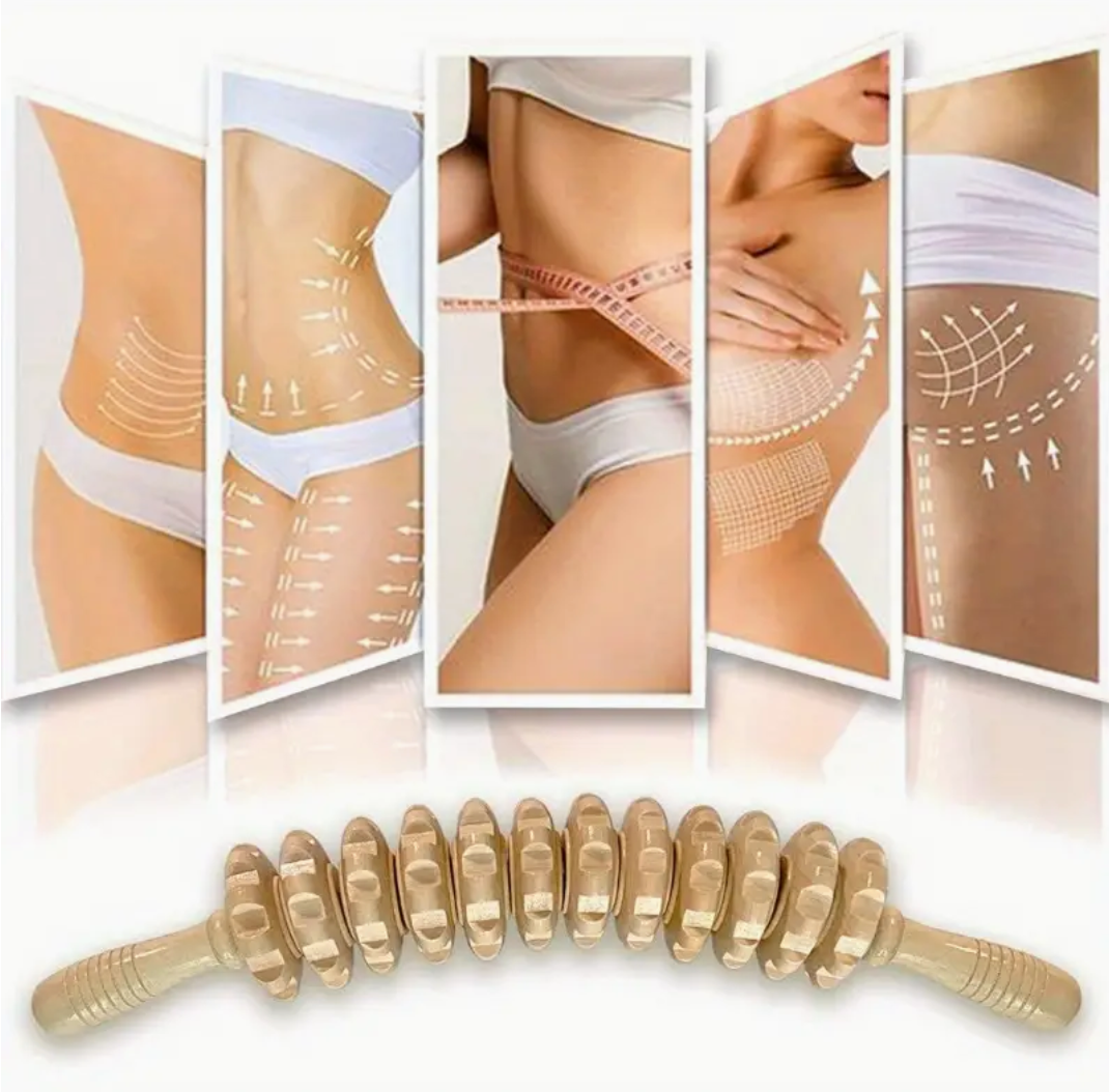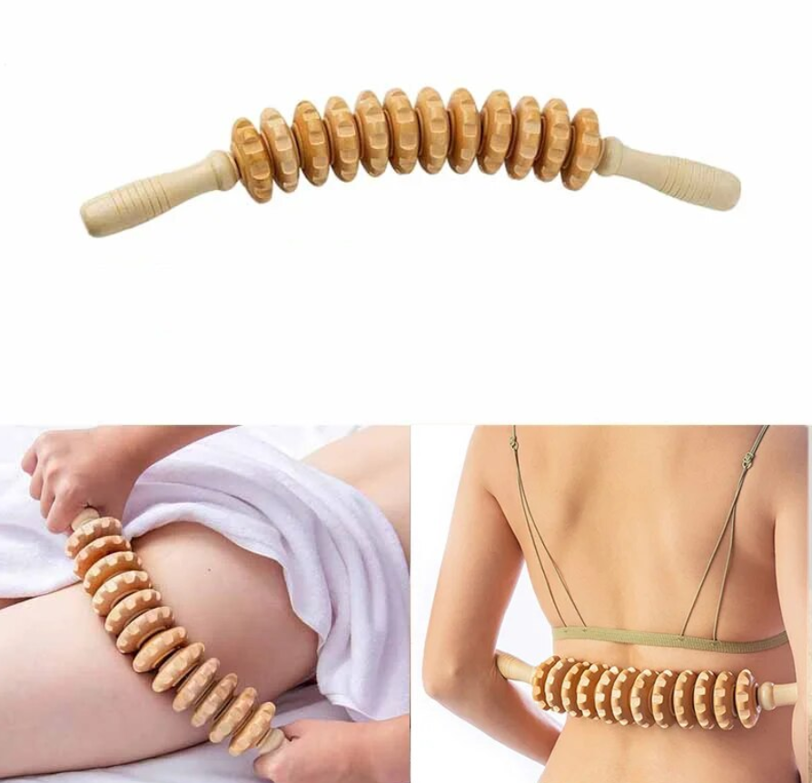 Enhance your body sculpting routine with our Curved Wooden Massage Roller for Maderotherapy. Crafted from high-quality natural wood, this roller is designed to improve blood circulation, break down fat deposits, and reduce the appearance of cellulite. Its ergonomic design allows it to adapt perfectly to the contours of the body, making it an essential tool for beauty professionals and personal use.