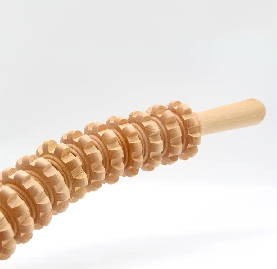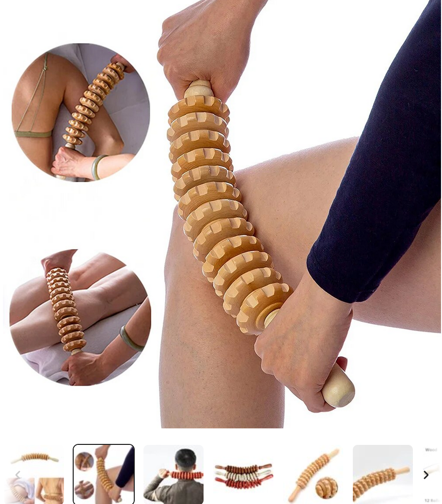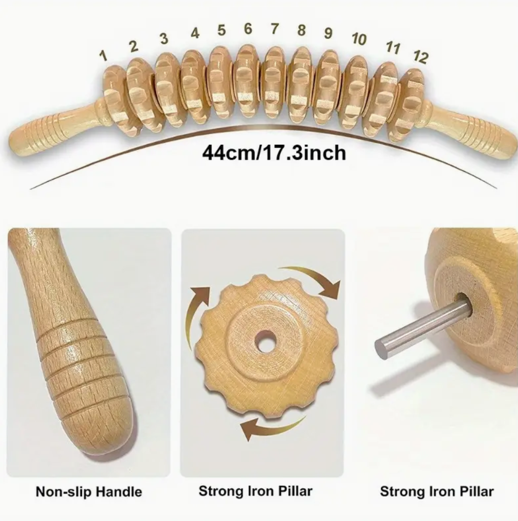 - Textured Wooden Discs – These discs help stimulate lymphatic drainage and break down fat deposits, promoting smoother skin.