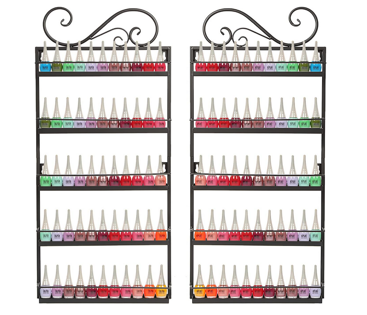 2 Pieces 5-Tier Wall-Mounted Nail Polish Display Rack - Black (rack only)