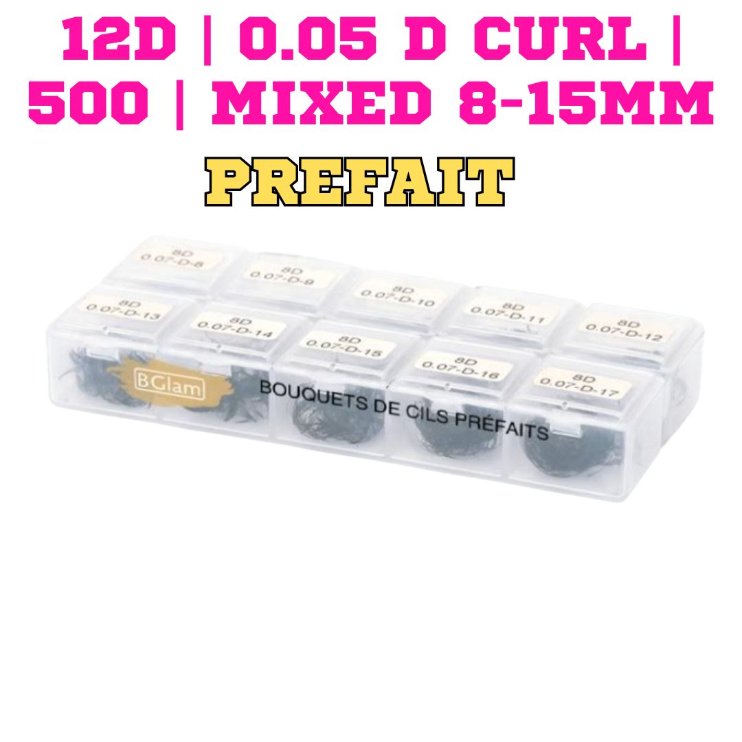 BGLAM Premade Fans 12D | 0.05 D Curl | 500 | Mixed 8-15mm
