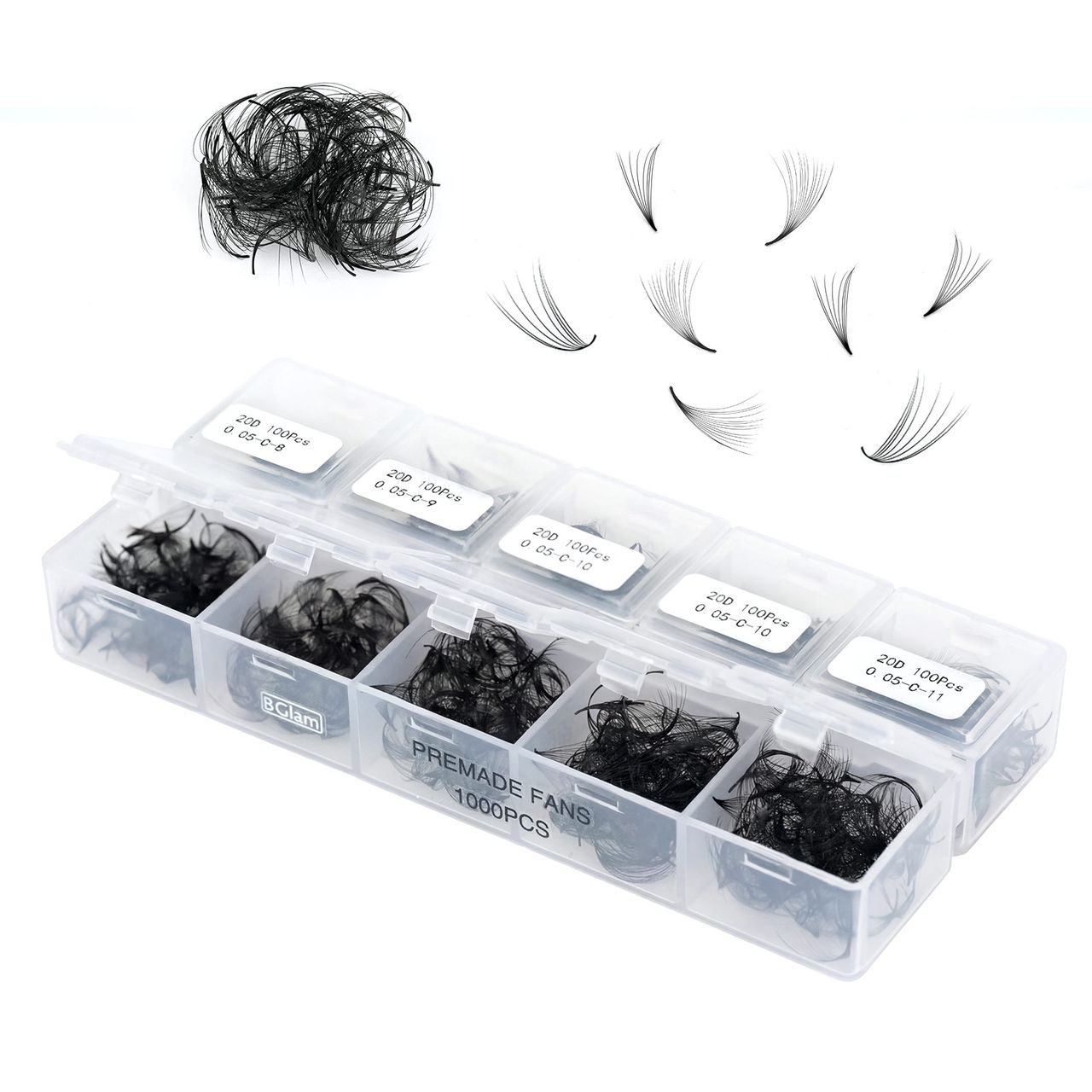 BGLAM Premade Fans 14D | 0.05 D Curl | 1000 | Mixed 8-15mm
