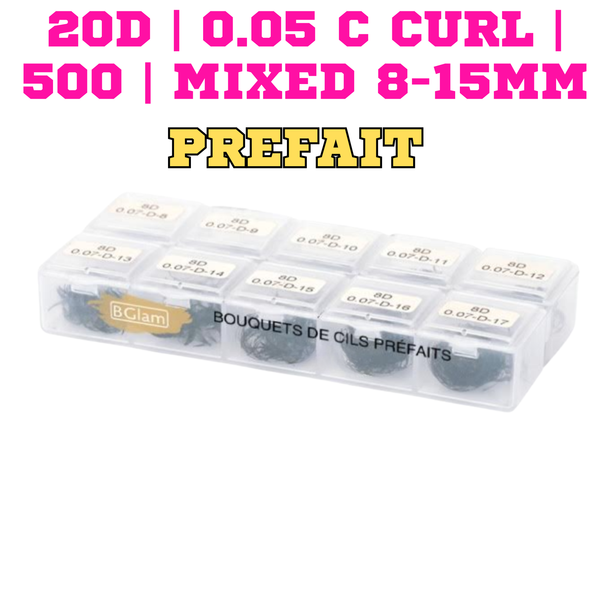 BGLAM Premade Fans 20D | 0.05 C Curl | 500 | Mixed 8-15mm