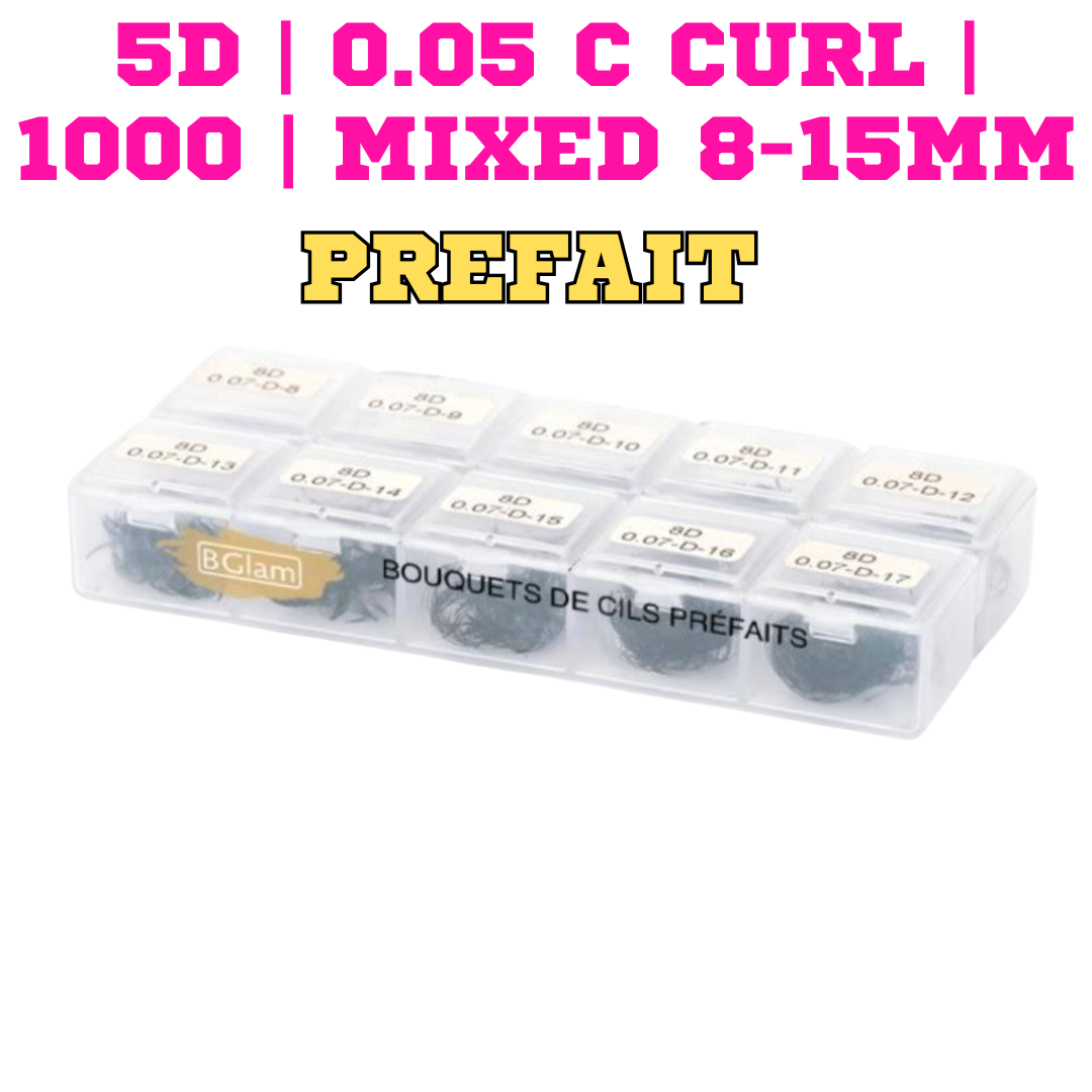 BGLAM Premade Fans 5D | 0.05 C Curl | 1000 | Mixed 8-15mm