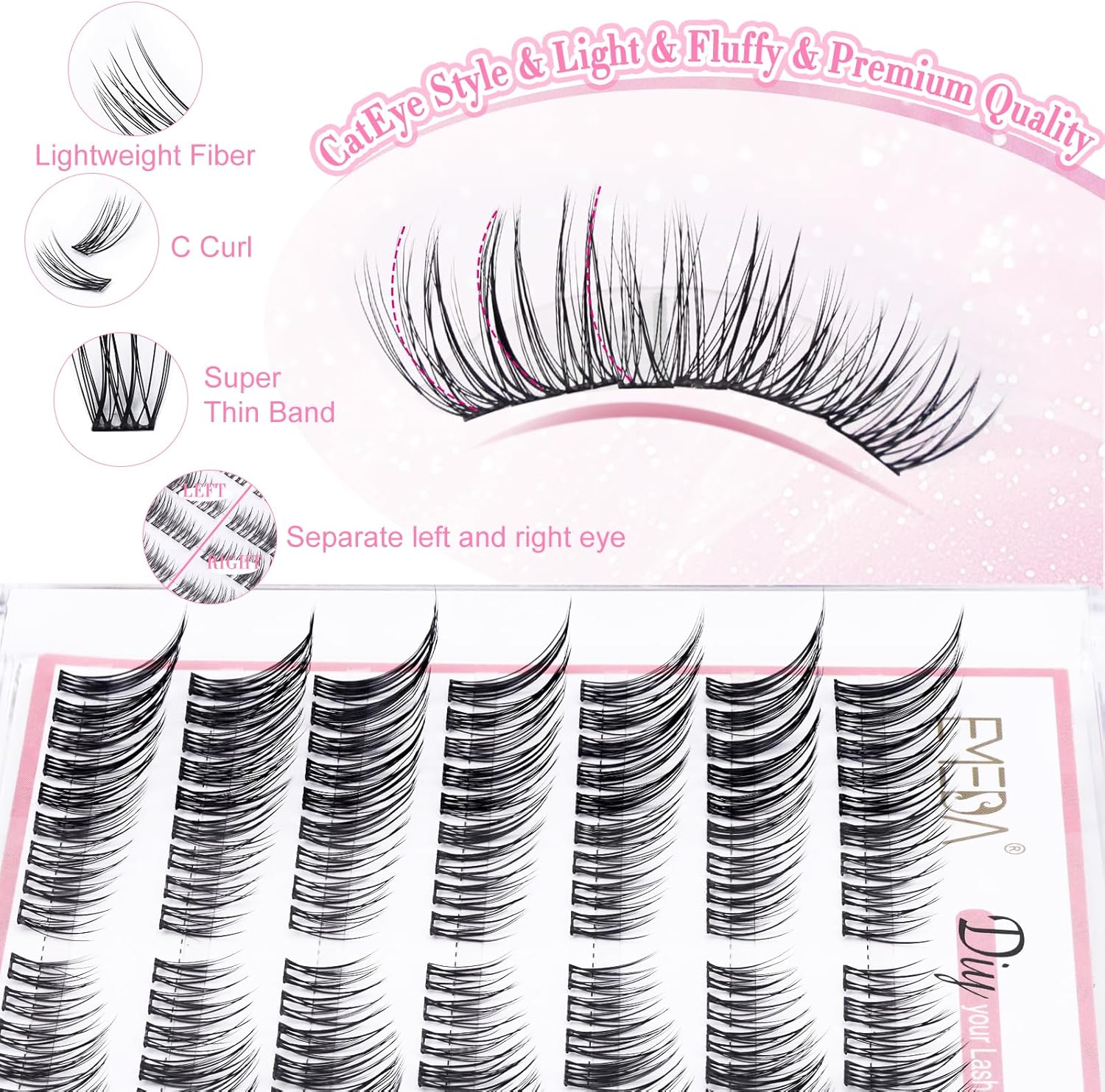 Cat Eye Look Cluster Lashes Kit | C Curl | Mix 7-15mm