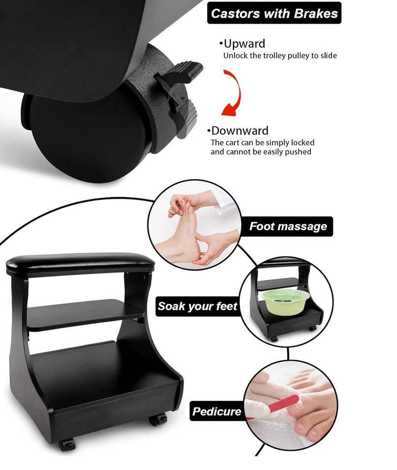 Ergonomic Rolling Pedicure Stool with Storage | Black