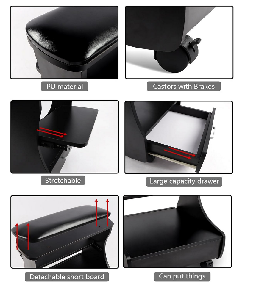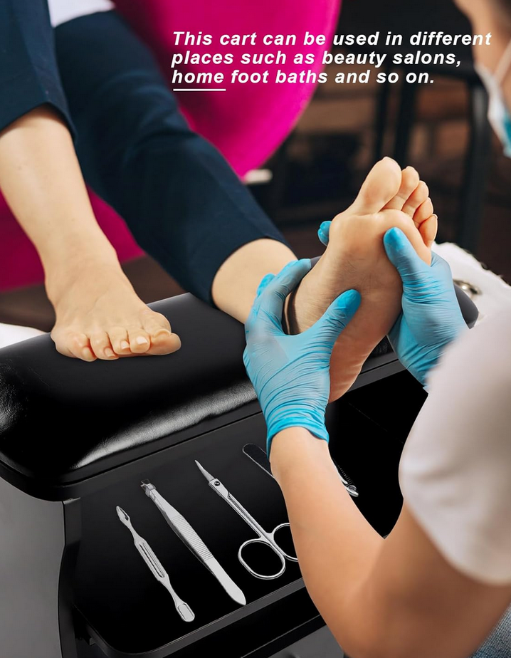 Enhance your workspace with this sleek and functional pedicure stool, designed for maximum comfort and organization. Its ergonomic design ensures proper posture during use, while the integrated storage shelves keep all your essentials within reach.