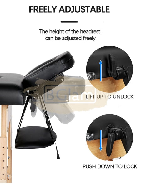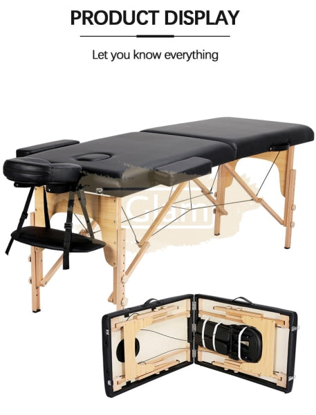 Portable Massage Spa Bed 185*60cm | Wood | 2 Zones | Black