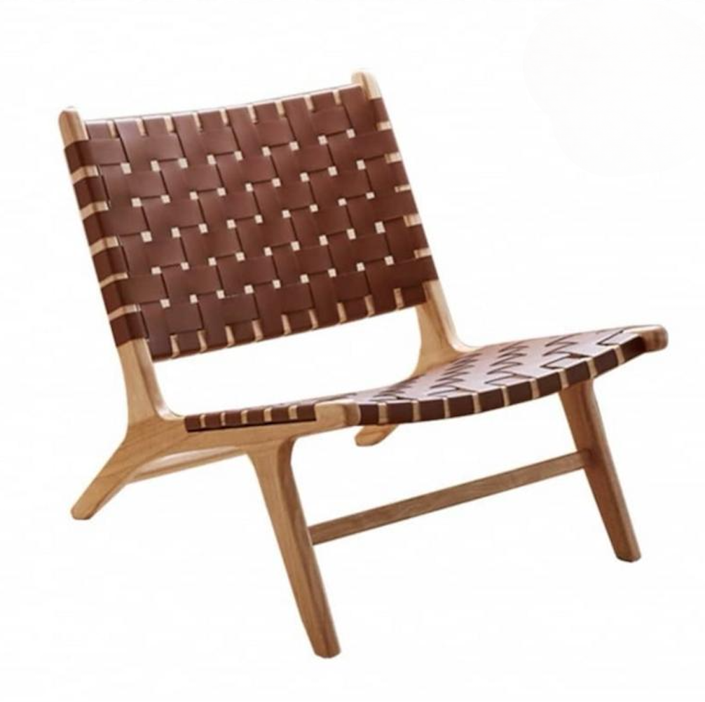 Add a touch of elegance and comfort to your space with this modern woven lounge chair. Featuring a sleek Chocolate leather seat and a sturdy natural wood frame, it blends style and durability seamlessly. Its Japanese-inspired interlocking assembly ensures stability while maintaining a refined aesthetic, requiring only minimal screwing for final reinforcement. Perfect for living rooms, relaxation areas, or salons.